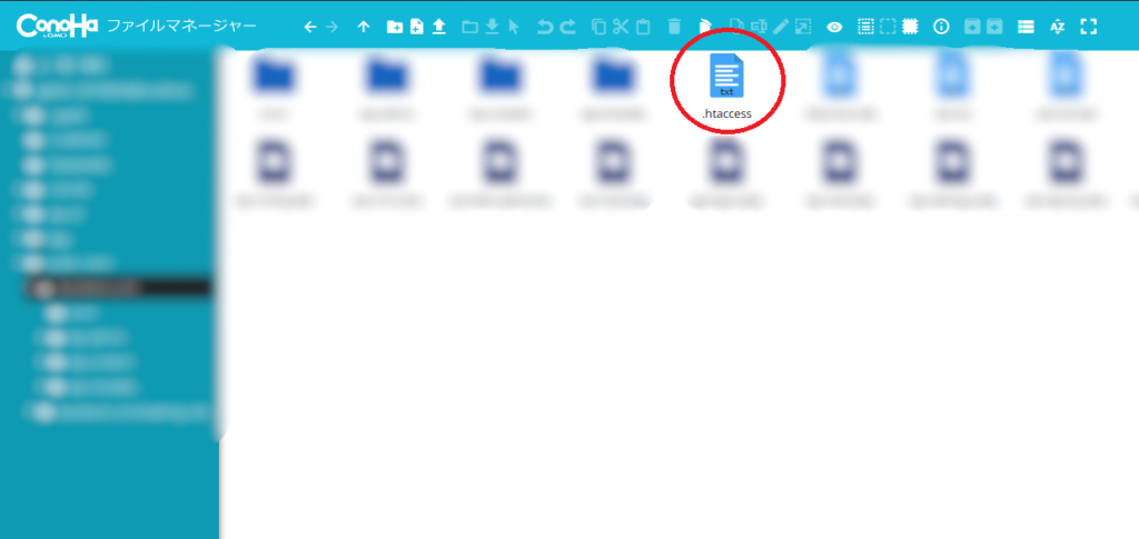 ConohaWINGのファイルマネージャーを開いて、/public_html/直下にある「 .htaccess」を編集します。